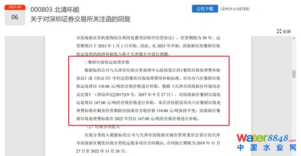 對(duì)此,北清環(huán)能表示,根據(jù)公司調(diào)查獲悉,標(biāo)的企業(yè)中標(biāo)天津市餐飲垃圾處理廠特許經(jīng)營(yíng)項(xiàng)目以來(lái),未簽署正式特許經(jīng)營(yíng)協(xié)議,原因?yàn)闃?biāo)的公司與主管部門(mén)就餐飲垃圾處置補(bǔ)貼單價(jià)事宜尚未達(dá)成一致意見(jiàn),F(xiàn)市內(nèi)六區(qū)餐廚垃圾收運(yùn)處理費(fèi)結(jié)算價(jià)為118元/噸,遠(yuǎn)低于濱海新區(qū)餐廚垃圾收運(yùn)處理費(fèi)348元/噸,也低于天津其他生活垃圾綜合處理廠處置費(fèi)價(jià)格。