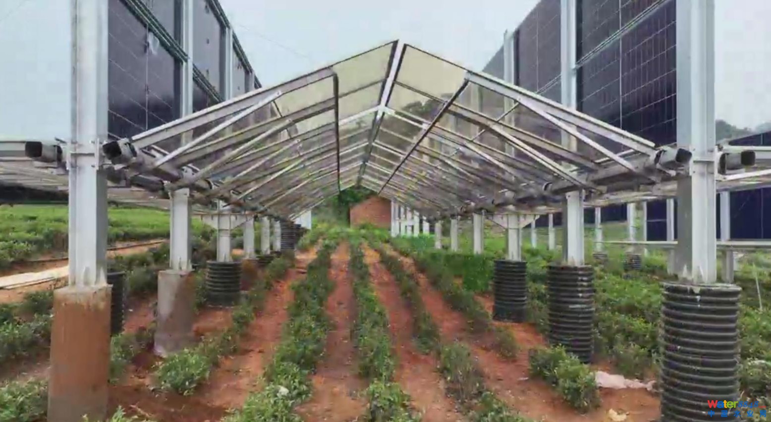 在距離試驗田不遠處的一座茶園中,幾塊光伏電板赫然“豎”立在陽光下——與常見光伏電板朝南“橫蓋”不同的是,這些光伏電板采用雙面垂直設(shè)計,能夠更高效地捕捉陽光。