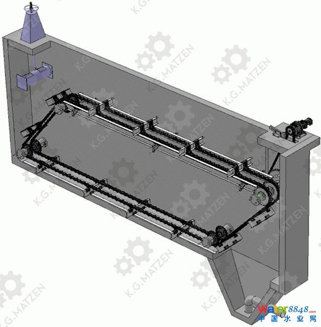 Sweep off continuously & stably the sludge/grit of the floor whiling removing the floating scum of the water surface in various rectangular sedimentation tank/grit chamber with high loads.
