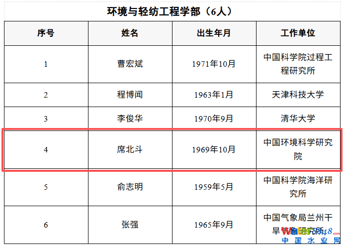 2025年兩院院士增選結(jié)果公布,席北斗當選中國工程院院士 生態(tài)環(huán)境系統(tǒng)中,中國環(huán)境科學研究院院長席北斗當選中國工程院院士。